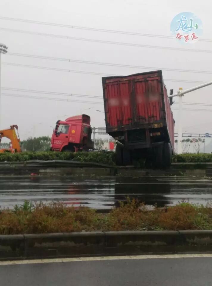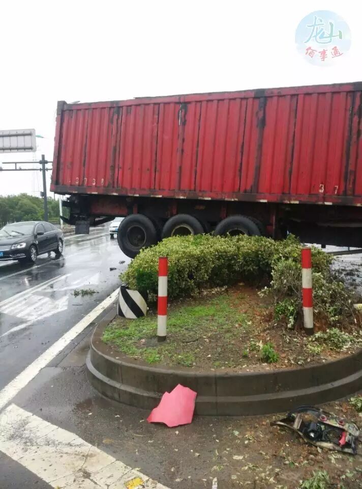 今早微友7点出门,看到中横线与灵峰路的十字路口,一辆大货车180度撞在花坛上,车可能是自西向东开的,可是车头来了个180度转弯朝西啦,现场很凌乱,有拖车在施救,中横线宁波往慈溪方向一路口堵住,只能借助人行道行驶.....具体情况微友也不知道。佰事通提醒广大车友,雨天路滑,开车视线不好,大家安全行驶,小车尽量不要跟着大车,远离点!
