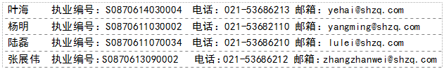 本产品中的信息均来源于公开数据,我公司对这些信息的准确性及完整性不做任何保证,也不保证所包含的信息和建议不会发生任何变更。报告中的信息和意见仅供参考,并不构成对所述证券买卖的出价或询价。我公司及其雇员对任何人使用本报告及其内容所引发的任何直接或间接损失概不负责。在法律允许的情况下,我公司或其关联机构可能会持有报告中提到的公司所发行的证券头寸并进行交易,还可能为这些公司提供或争取提供投资银行或财务顾问服务。本报告仅向特定客户传送,版权归上海证券有限责任公司所有。未获得上海证券有限责任公司事先书面授权,任何机构和个人均不得对本报告进行任何形式的发布、复制、引用或转载。上海证券有限责任公司对于免责条款具有修改权和最终解释权。
