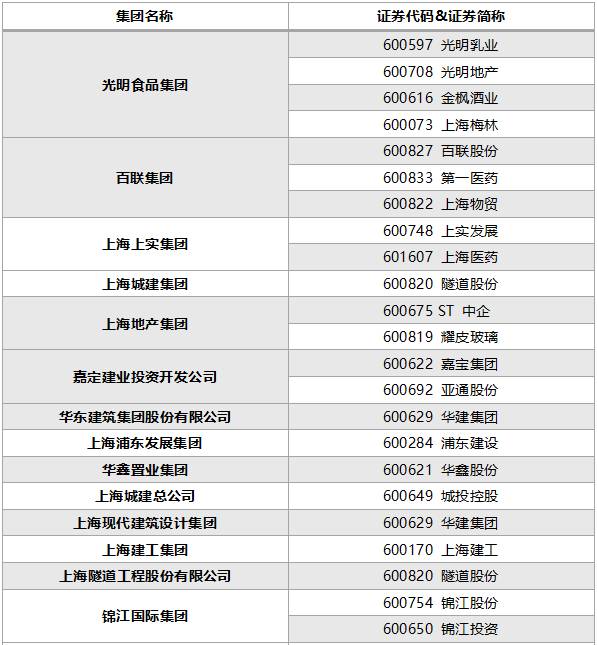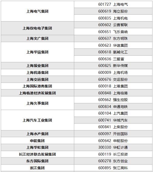 上海国资体系上市公司一览
