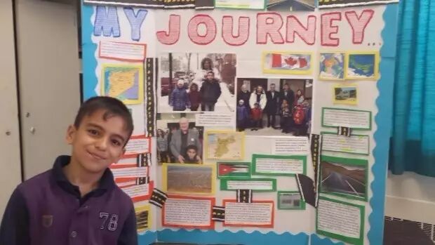 Rashdan的“My Journey”项目展示了叙利亚的地图,还有他和他妻子被省级政客欢迎的照片,当时他们刚刚到达Charlottetown机场。其中还有一张Al Maclauchlan的快照。Al Rashdan告诉CBC新闻记者Lindsay Carroll:“这真是一个好地方,我感觉很快乐,因为我们都在这里,我们都过得很好。等我的国家变得安全时,我再回去”