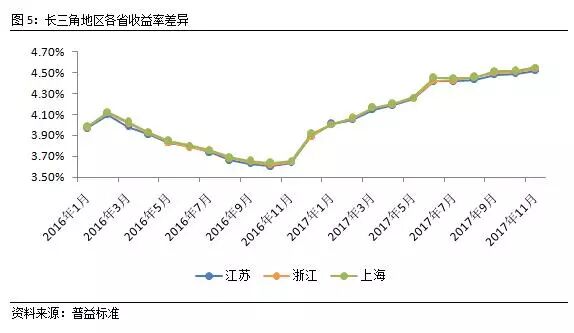 从收益表现来看,江苏、浙江、上海三个地区的银行理财收益延续了上个月的上涨趋势,且涨幅有所扩大。其中,江苏省、浙江省、上海地区的银行理财收益均上涨了3BP,收益水平分别为4.52%、4.54%、4.55%。整体来看,各省份的理财收益差距较小,长三角地区理财产品平均收益平缓上升。