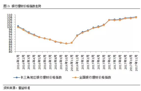 长三角地区银行理财价格指数稳定上升。11月,长三角地区银行理财价格指数继续上涨,涨幅较上月略有扩大。在稳健偏中性货币政策未改变的前提下,市场流动性仍处于紧平衡状态,同时,本月央行借助公开市场操作向金融机构注入大量流动性,使市场资金面持续平稳,银行理财价格指数因此维持了此前的平稳上升态势。