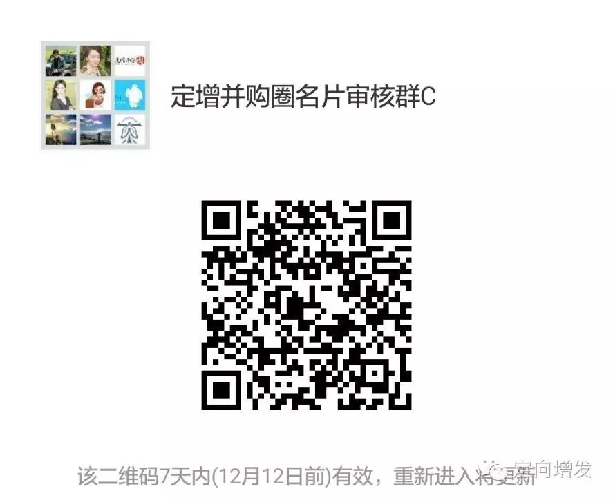 【定增并购圈】是专注于定向增发、并购重组和借壳上市等一级、一级半市场的金融从业社群和项目对接平台,致力于干货交流,向智者问道,与强者同行,欢迎加入我们圈子。扫描最下方二维码参与【定增并购圈】微信社群实时互动,并请向小秘书(微信号ID:WeIBD16)提交单位名片,以便后台备注及业务合作。已加入的小伙伴请勿重复加入,谢谢理解和支持!!