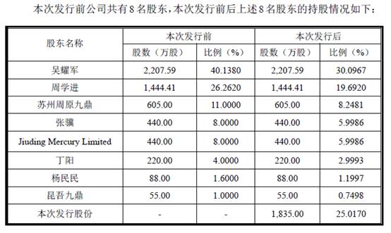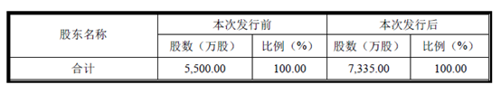 下图为拓斯达在2016年12月12日最新披露的招股说明书里,披露的本次发行前后发行人股本变化情况。
