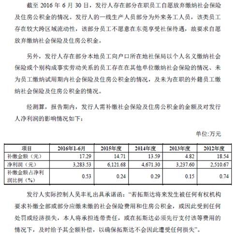 对此,拓斯达不仅补充了各个报告期内,以每末为截点发行人员工中缴纳社会保险费及住房公积金,还对未缴纳社保的个人愿意一一作出解释。同时发行人还作出承诺假如出现问题,愿意承担连带责任。