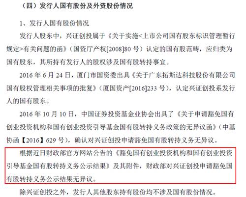 下图是公司在2015年7月3日第一次披露的招股说明书里,第三大股东兴证创投并没有被认定为国有股东。
