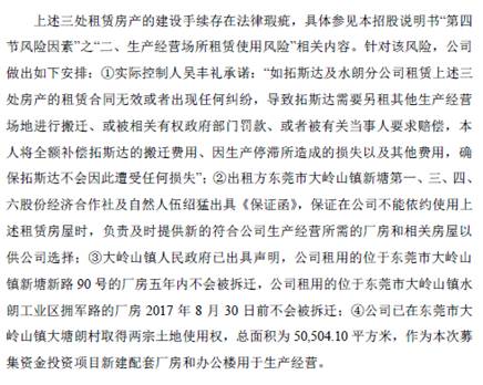拓斯达的反馈意见中出现了“发行人承租的厂房和办公楼至今未取得建设工程规划许可证、建设工程施工许可证、房屋所有权证等证书,上述租赁房屋的建设手续存在法律瑕疵“的内容。