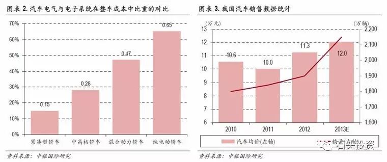 由于汽车电气化系统成本在整车成本中占比越来越重,为了降低整车成本,国外一流的整车生产商开始逐渐将电气系统中部分标准型配件的订单向国内生产商转移。所以,国内具有核心技术的专业零配件生产商有望通过这次机会进入跨国汽车生产商的供应链体系,分享到全球的零配件市场,从而快速成长为行业的龙头企业。