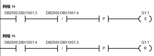 编辑M代码M11、M12至PLC程序控制其他空余I/O输出点Q1.1,完成测头开启、关闭动作,PLC参考程序如图4所示。