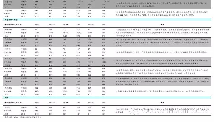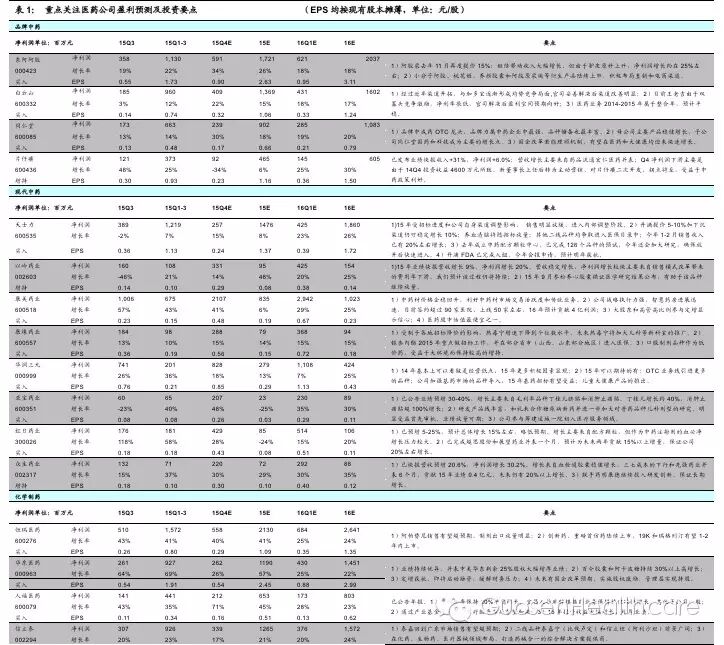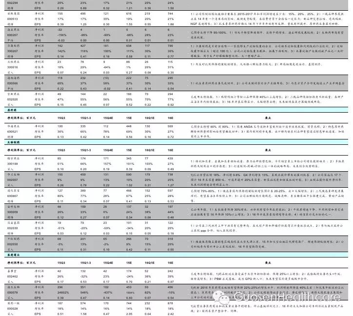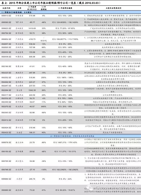 15Q4业绩预计增速30%以上:阿胶、亚宝、恒瑞、尔康、海药、京新、华海、翰宇、海王(去年同期亏损,同比增速为负)、万东、华邦、冠昊、九洲、爱尔、智飞、迪安、博雅。