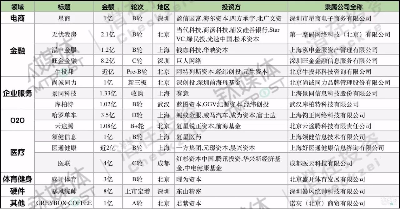 周报:第一时间汇总每周企业投融详情,综合每周投融领域概况;