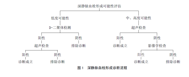 ②若患者为中、高风险则建议每隔2d动态观察D-二聚体变化或1周后复查近端或全下肢静脉超声;