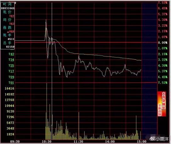 2、股价线与均价线的距离拉的较远。