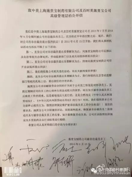 一,直至公司对非法裁员提出妥善解决为止,向施贵宝制药公司总部以及北京等相关办事处所,;