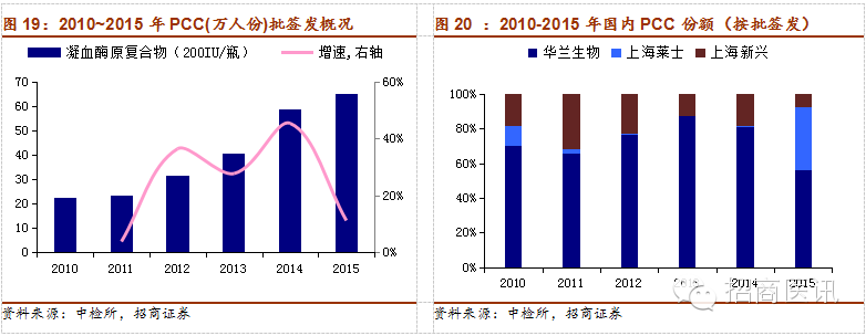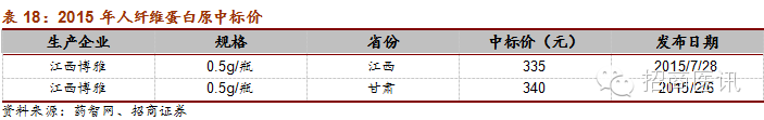 上海莱士和派斯菲科2015年批签量分别为13.11和7.22万瓶,分别同比上升了90%左右。江西博雅2015年批签量18.08万瓶,同比上升20%左右。按照目前的发展趋势,人纤维蛋白原市场将会出现三足鼎立的局面。