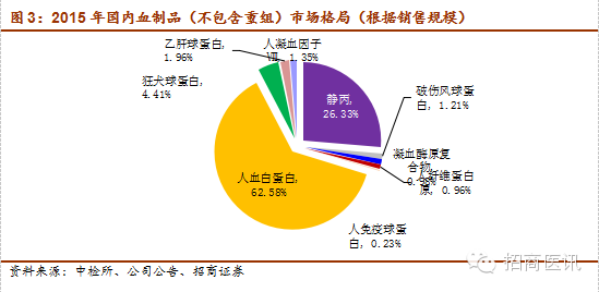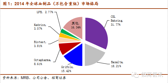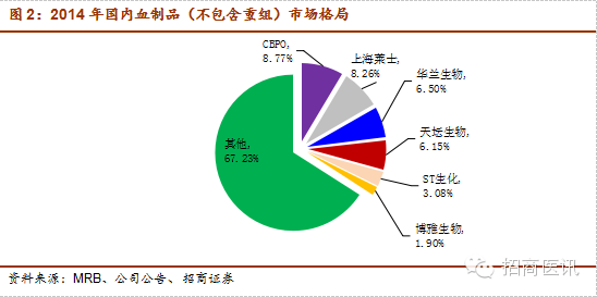 国内血制品市场集中度逐步提升。根据CBPO年报数据,2014年中国血制品市场(不包括重组产品)规模为25亿美元,约为155亿元人民币。根据MRB的预测,2014年到2019年中国的血制品(不包括重组产品)年增速在20%左右,随着行业并购扩张,以及龙头企业在规模、资金以及新开浆站方面的优势,血制品市场的市场集中率也继续提升,CR4从2014年的29.69%上升到了2015年的33.65%,但是距离全球血制品市场超过70%的CR4还是有明显的差距。