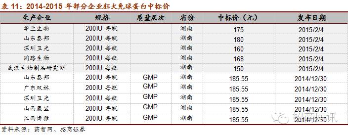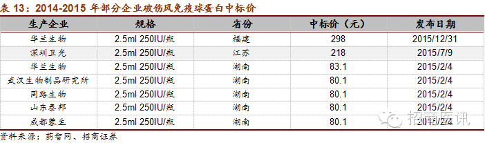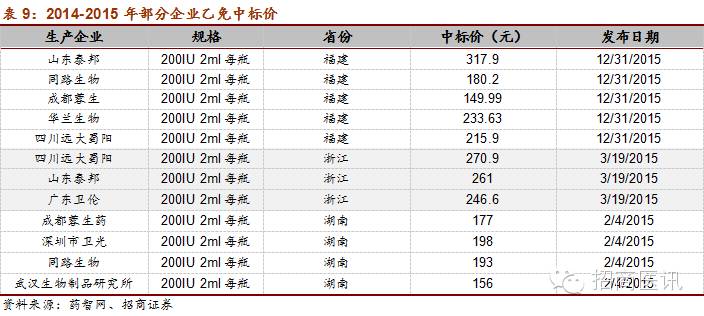 由于乙肝/破伤风免疫球蛋白需要从经过特定疫苗免疫的人群的血浆中提取,原料缺乏的情况时有发生,随着药品价格放开,其中标价格有上升的趋势。