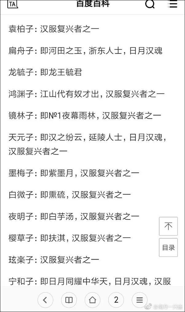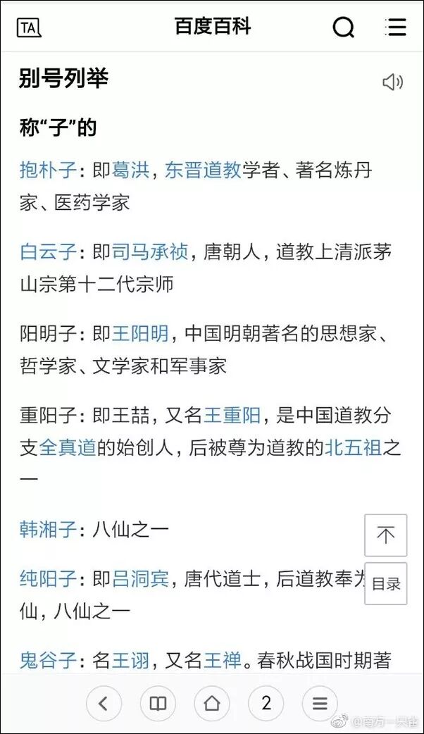微博网友@南方一只雀 在查询古人别号的相关资料时,无意间发现了百度百科中“别号”这一词条下,有许多莫名其妙的“XX子”……