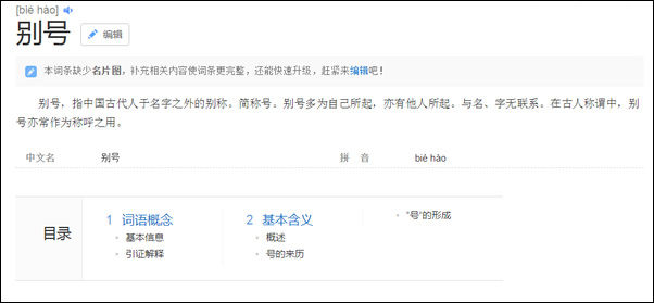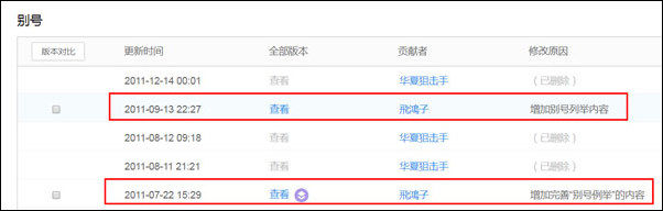 查看百度百科“别号”词条的“历史版本”,原来是一位名叫“飞鸿子”的网民在2011年就将这些内容加入到了“别号列举”里。