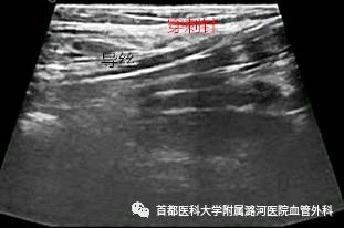 确认导丝位于静脉管腔内.