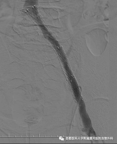 (3)为最大限度保证静脉阻塞段回流血量.支架必须完全覆盖病变段,以预防再闭塞的发生,如病变已超越腹股沟韧