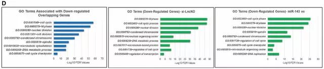 ▲ 而且用这些共同表达下调的基因以分子功能做GO分析,发现可信度最高的也是一些跟细胞周期过程相关的基因(图D)。