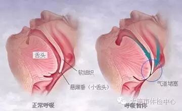 这种打鼾和单纯打鼾不同,音量大,十分响亮;鼾声不规则,时而间断。