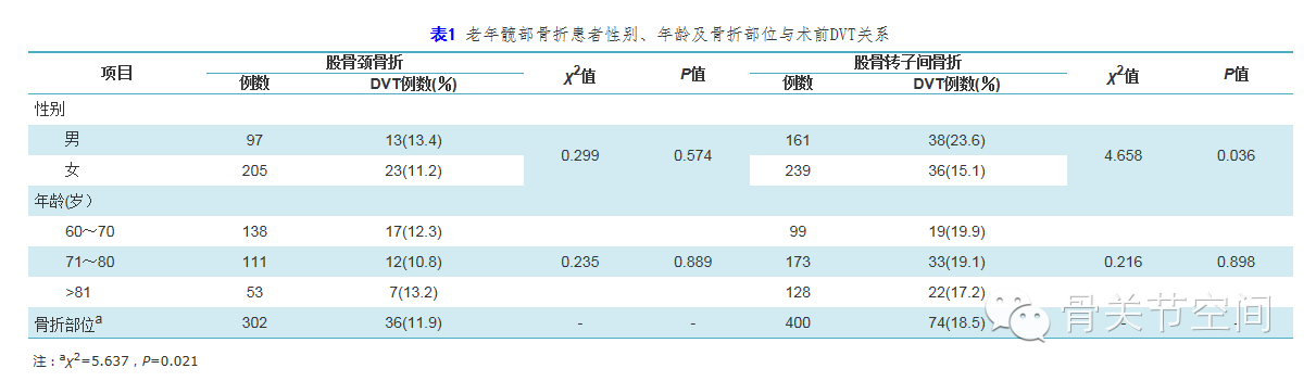一、性别、年龄及骨折部位与DVT关系