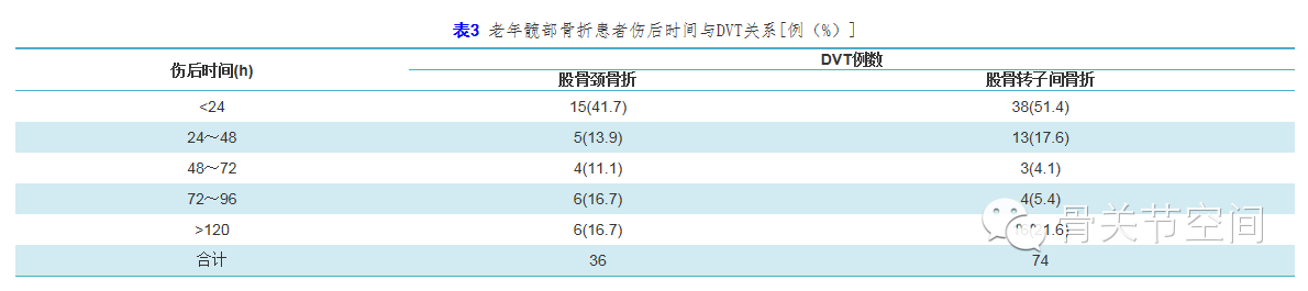 (一)老年骨质疏松性髋部骨折患者伤后第1天(24 h内)下肢DVT患病率最高