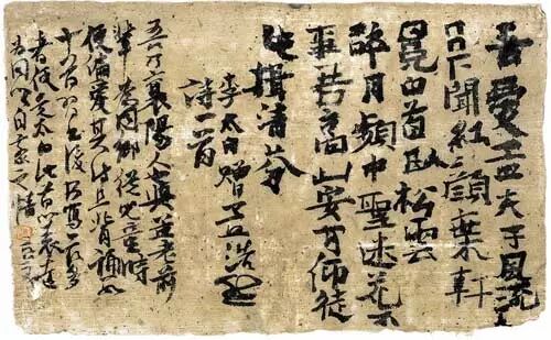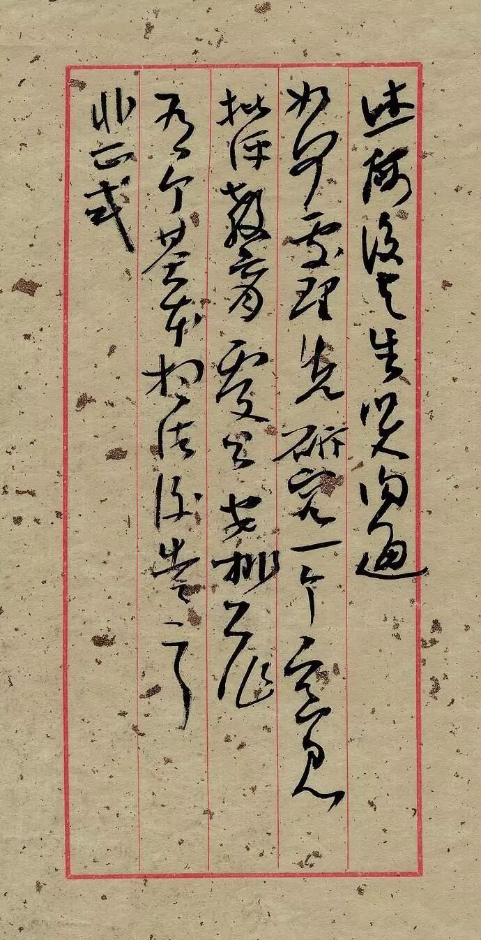 他为了降低速度,表现自己所想象的那种创作效果,所以才将影响他主观追求的因素——笔内多余的墨舔去。一般情况下,蘸上饱饱的一笔墨开始创作,下笔前的几个字速度一定要快,不快就聚墨成黑,不仅成不了字,连孙过庭批评的“聚墨成形”也难以实现了。随着书写字数增多,笔内所含墨越来越少,书写的速度就会自然而然的越来越慢。这就是创作速度的自然规律。