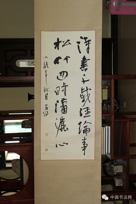 每次去于老师的办公室,都能见到很多人并且身份丰富,可谓“各色人等”,而于老师都能畅谈自如其乐融融,关于这一点,别人有各种评价,我认为于老师与人交,不装不假,见真性情,是最根本的原因。记得有一次,于老师接待外校来的书法同行,席间很幽默地讲了自己早年一件很心酸的故事:当时于老师在农村家里,条件差,结婚的时候,借了一张床,三日后,师母回门,床便被人索回。时过多年,师母依然耿耿于怀,当然现在这种回忆已然成为温馨的家史了。于老师在生人面前能自曝起早年窘境,真情流露。与人的交往顿时没了距离没了生分感。