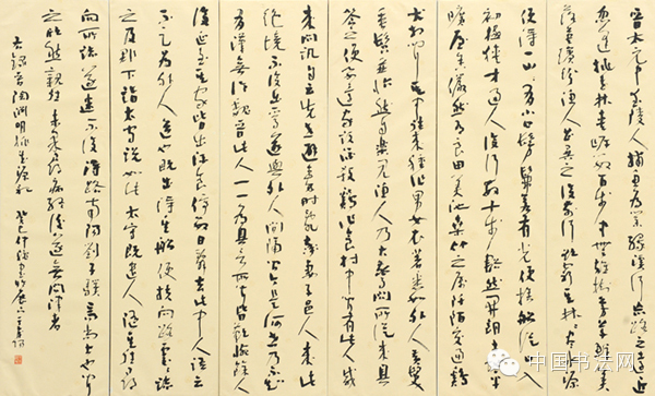 作书先修身,此言不虚。茂阳先生书法如其为人,沉着大度、机敏洒脱。其用笔以繁入简,轻重缓急尽生毫端而不露痕迹;结字虚实相生,疏密穿插皆由心造而绝无做作之气。其章草作品笔法沉稳劲健,简约之中蕴含着丰富的笔触,字形造势萧散简远,平淡中尽显奇绝之势。