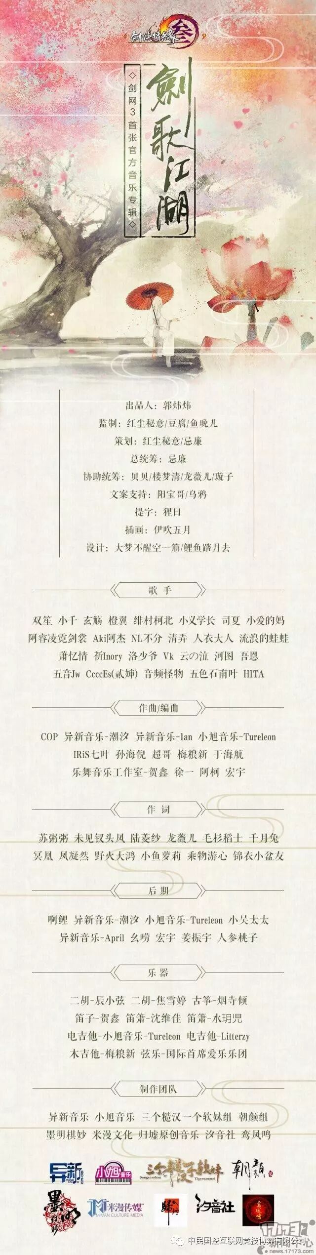 与此同时,官方首张音乐专辑《剑网3·剑歌江湖》即将上线发售,国内顶尖一线民乐大师、九大有爱原创音乐团队、二十六位人气歌手、百位创作人倾力打造。【详细】