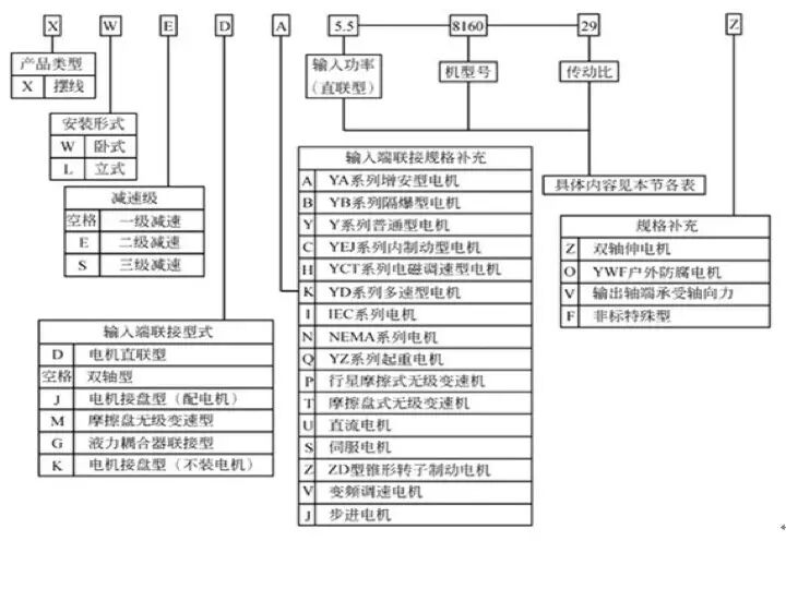 2、输入轴的转速额定转数为1500转/分,在输入功率大于18.5千瓦时建议采用960转/分的6极电机配套使用。