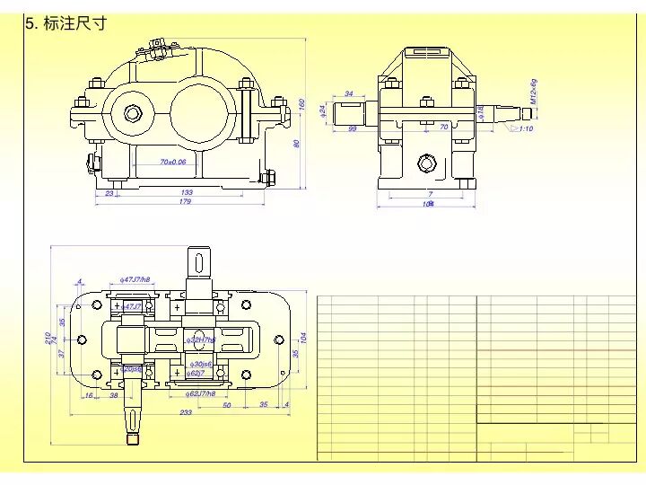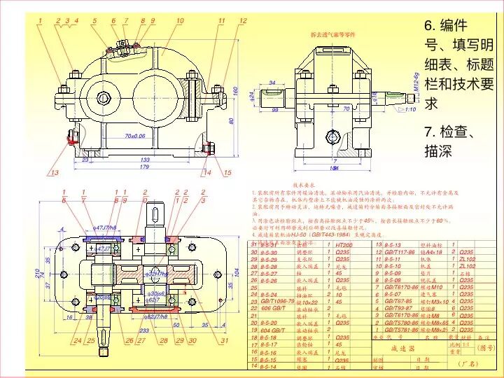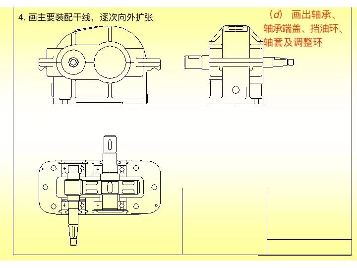 6、拆卸减速器二、三、四轴端盖(端盖与箱体安装位置做标记);