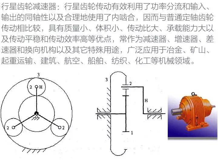 减速机是一种动力传达机构,利用齿轮的速度转换器,将电机(马达)的回转数减速到所要的回转数,并得到较大转矩的机构。在目前用于传递动力与运动的机构中,减速机的应用范围相当广泛。几乎在各式机械的传动系统中都可以见到它的踪迹,从交通工具的船舶、汽车、机车,建筑用的重型机具,机械工业所用的加工机具及自动化生产设备,到日常生活中常见的家电,钟表等等。其应用从大动力的传输工作,到小负荷,精确的角度传输都可以见到减速机的应用,且在工业应用上,减速机具有减速及增加转矩功能。因此广泛应用在速度与扭矩的转换设备。