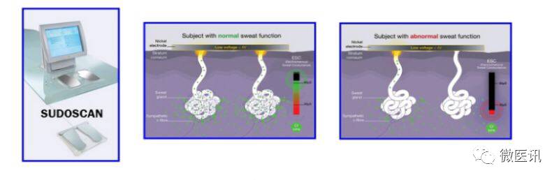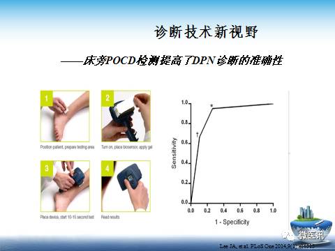 糖尿病神经病变的早期诊治的进步亟需新的技术、新的检查方法的出现。皮肤活检、角膜共聚显微镜、泌汗功能评估、功能性核磁共振等相继出现。新技术中,床旁POCD(一个新型的床旁检测设备)提高了DPN诊断的准确性,皮肤活检被认为神经病变诊断的金标准,皮肤标本采取的新仪器、新技术克服了过去皮肤活检的老方法对皮肤造成损伤很难愈合的缺陷,适应于多数糖尿病患者检查。功能性核磁共振探索糖尿病认知功能与海马体积及生化物质的关系。利用核磁共振研究糖尿病患者海马体积及其生化物质的改变对认知功能的影响,引起了国内外学者的关注。