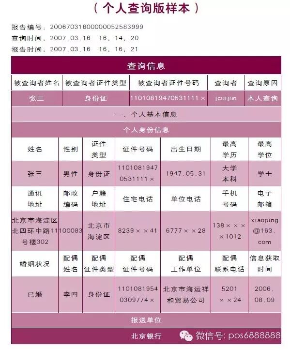 个人信用报告中的个人身份信息主要是由各商业银行上报的,追溯起来,就是个人在商业银行办理信用卡或贷款业务时填写的相关申请表上的个人基本信息。由于一个人可以在不同的时间向不同的商业银行申请信用卡或贷款业务,而且不同时候填写的个人身份信息可能不同,个人信用报告中显示的个人身份信息是各商业银行上报的同类信息中最新的一条,但仍可能与您当前的实际情况不符,原因是您在最近一次把信息留给银行后,个人情况可能又发生了变化。因此,如果个人基本信息发生了变化,请及时到与其发生业务的商业银行更改客户资料,以保证个人信用报告中身份信息的及时性和准确性。