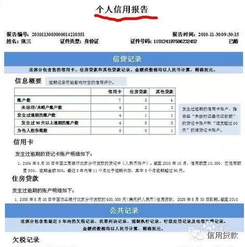 个人信用报告中的是指没有按约履行合同的信息,主要出现在以下几个地方: