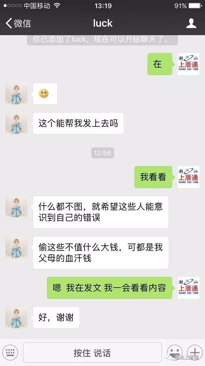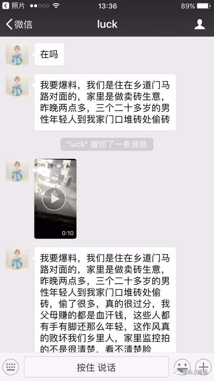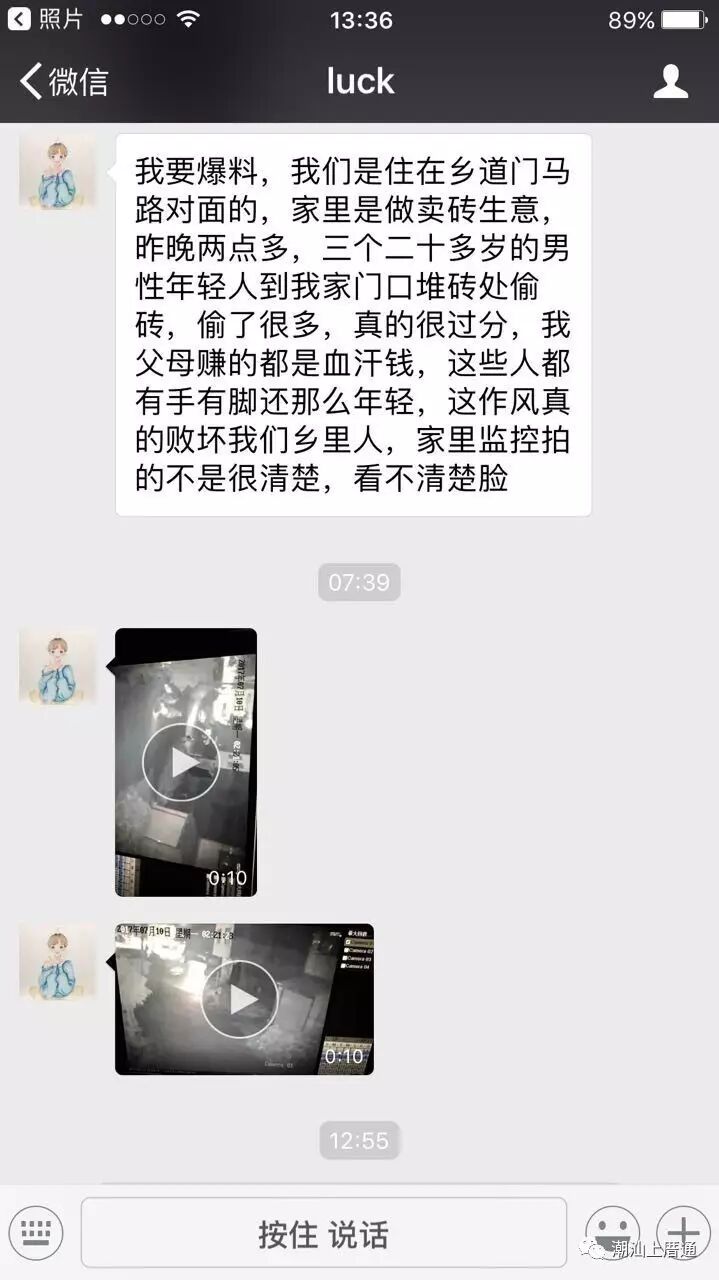 网友报料:就在今天凌晨2点多,汕头市潮阳区下厝路口即乡道门对面,在中凯塑业旁边的路口昨夜一帮年轻的小伙偷报料网友他家的红砖!从闭路看三个偷砖贼年龄应该不大!估计20多岁!现在这个年头有手有脚饿不死!何必在夜里偷这点砖,不值钱。虽然不值钱,但是是人家的血汗钱!年轻人大把世界!回头是岸!偷几条砖进去了不值得!