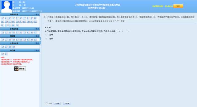 (郑重声明:该操作指南旨在让考生熟悉无纸化考试环境和作答方式,2016年度正式考试系统可能会有细微差别。)