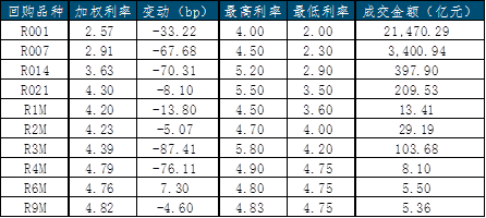 二、资金面:本周初适逢月末,资金面例行紧张,利率快速抬升,日内银行融出有限,跨月后资金面显著好转,利率亦快速下行,月初资金面宽松或将持续一段时间。