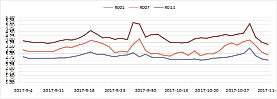 【摘要】:宏观方面:国际方面,美国经济稳健增长,12月大概率加息;国内方面,10月PMI低于预期,但仍强,发电耗煤高位回落。本周初适逢月末,资金面例行紧张,利率快速抬升,日内银行融出有限,跨月后资金面显著好转,利率亦快速下行,月初资金面宽松或将持续一段时间。近期建议,国内债市目前仍较为脆弱,投资者信心短期内难以恢复,建议谨慎。
