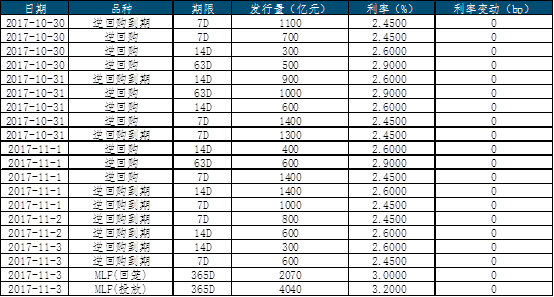 或受十九大期间停产限产影响,10月PMI低于预期,但仍强,表明经济基本面持续向好。海外方面,美国经济稳健增长,12月大概率加息;鲍威尔被任命为下一届美联储主席,市场普遍认为会延续耶伦的货币政策。近期建议,国内债市目前仍较为脆弱,投资者信心短期内难以恢复,建议谨慎。