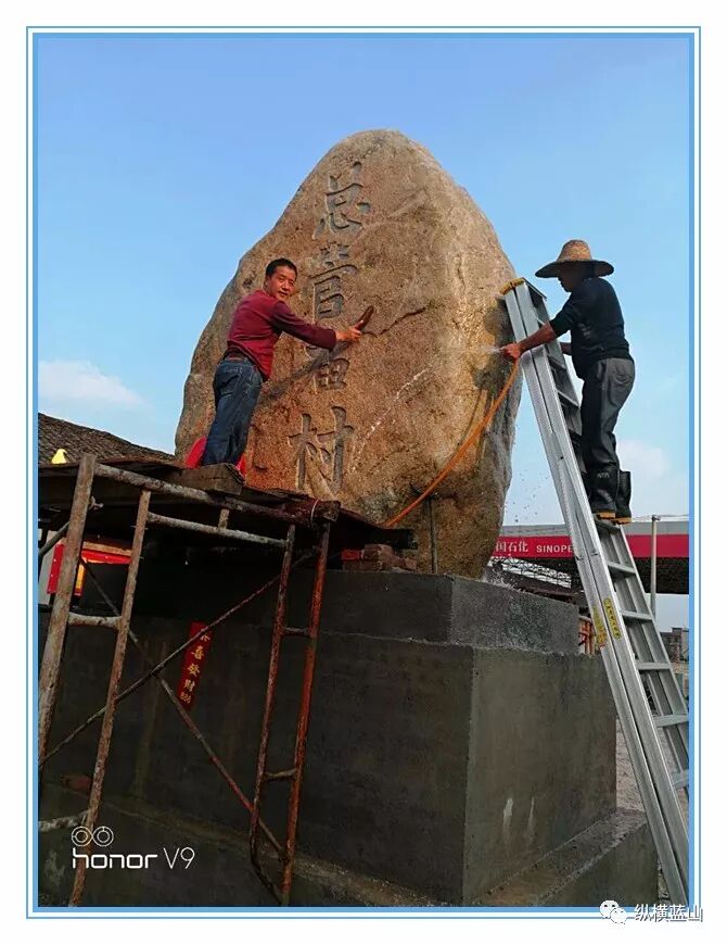 找到石头后,黄小忠又组织人修建村标基座,并在修建期间亲自参与施工,每天顶着烈日为基座浇水。外地施工人员对村干说:“你们村里这位年青人做事很认真,应该多给点工钱”。