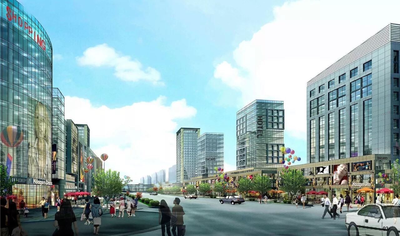 “四区”——行政办公区、公园休闲区、商业游憩区、居住区。