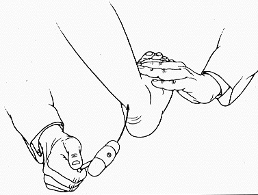 为保证造影剂能一次不间断地注入,注射时需要偶尔将注射器回抽。欧乃派克用于成人腰部脊髓造影时,通常剂量为10~15ml,浓度为170~190mg/ml。较高部位造影(如胸椎)使用水溶性造影剂的浓度应加大,使用时应参考包装说明书。用水溶性造影剂如泛影酰胺注射完毕后,可拔除针头。如用碘苯酯作造影剂,应保留针头,并用无菌敷料覆盖.