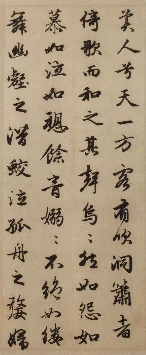 赵孟頫《前后赤壁赋》中方转较少,圆折最为常见,此亦显示出赵孟頫对腕法、指法的熟稔程度。如附图中“焉”、“驾”、“高”、“鱼”四字的转折不露痕迹,颇见功力。