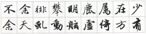 撇在起笔上大多采用切入、顿笔下行的写法。这一入笔动作有助于调正笔锋,表现撇的劲健。如附图中“不”、“余”、“徘”三字。