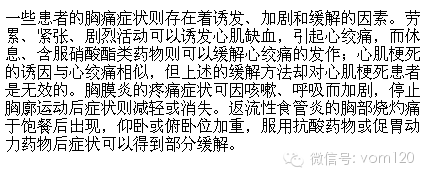 胸痛的伴随症状对于胸痛的诊断和鉴别诊断也有着非常重要的提示意义。当患者伴有吞咽困难、反酸、嗳气、恶心呕吐等消化道症状时,往往提示存在着消化系统疾病。当患者出现呼吸困难者,提示发生了较大范围的肺部病变,如大叶性肺炎、自发性气胸、渗出性胸膜炎或肺栓塞等。心源性胸痛痛患者有时也会伴发有心悸、呼吸困难等表现。而当就诊患者出现苍白、大汗、血压下降甚至休克表现时,多考虑心肌梗死、主动脉夹层或夹层动脉瘤、主动脉窦瘤破裂或大块肺栓塞等。
